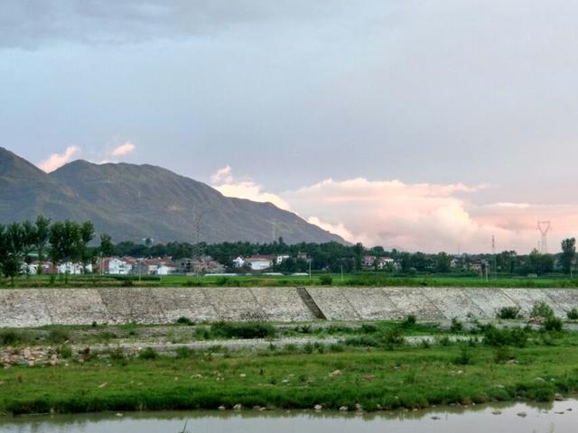 一場(chǎng)清新的大雨過(guò)后,我們?cè)陉兾魇∥鬣l(xiāng)縣堰口鎮(zhèn)的G210國(guó)道上駕車行駛著,透過(guò)路邊高高低低的樹(shù)木,我望著遠(yuǎn)處山峰上裊裊婷婷飄浮的白云,雨后的山更青,填更藍(lán),襯得云也白了幾分,悠閑了更多。突然層層掩映的樹(shù)枝間打開(kāi)了一個(gè)豁口,沒(méi)有樹(shù)木的遮掩對(duì)面的美景完全呈現(xiàn)在我們的眼前,遠(yuǎn)處的山高到天際,更遠(yuǎn)處的云卻降到地平線邊,躲在山的腳下,云上的紅暈使得它像極了一個(gè)嬌羞的陜南姑娘,躲藏在宛若父親的大山背后。再近一點(diǎn)村莊安詳?shù)奶稍谏侥_下的田野中間,村外的高壓電線塔站在一片青青的稻田中間,像極了一個(gè)孤獨(dú)的稻草人,盼著豐收,守著安寧。眼前的河流大壩被綠油油的野草環(huán)抱,雨后的河水還沒(méi)有上漲,緩緩地靜靜地流淌,緩緩地靜靜地留到我心上。日薄西山,所有的一切都要被夏夜的蟲(chóng)鳴包裹,我不知道有沒(méi)有第二人在這煩悶的夏季里也收獲注意到這片清涼的美景。