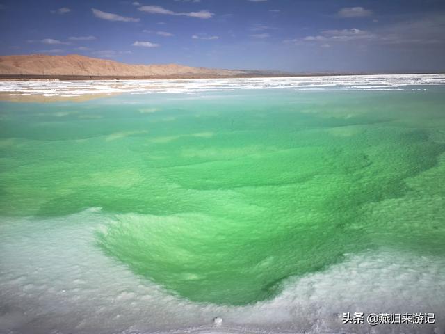翡翠湖屬于鹽湖,位于茫崖,有26平方公里,大大小小的鹽湖56個(gè)。翡翠湖湖如其名,如翡似翠,因鮮為人知,所以游客很少。